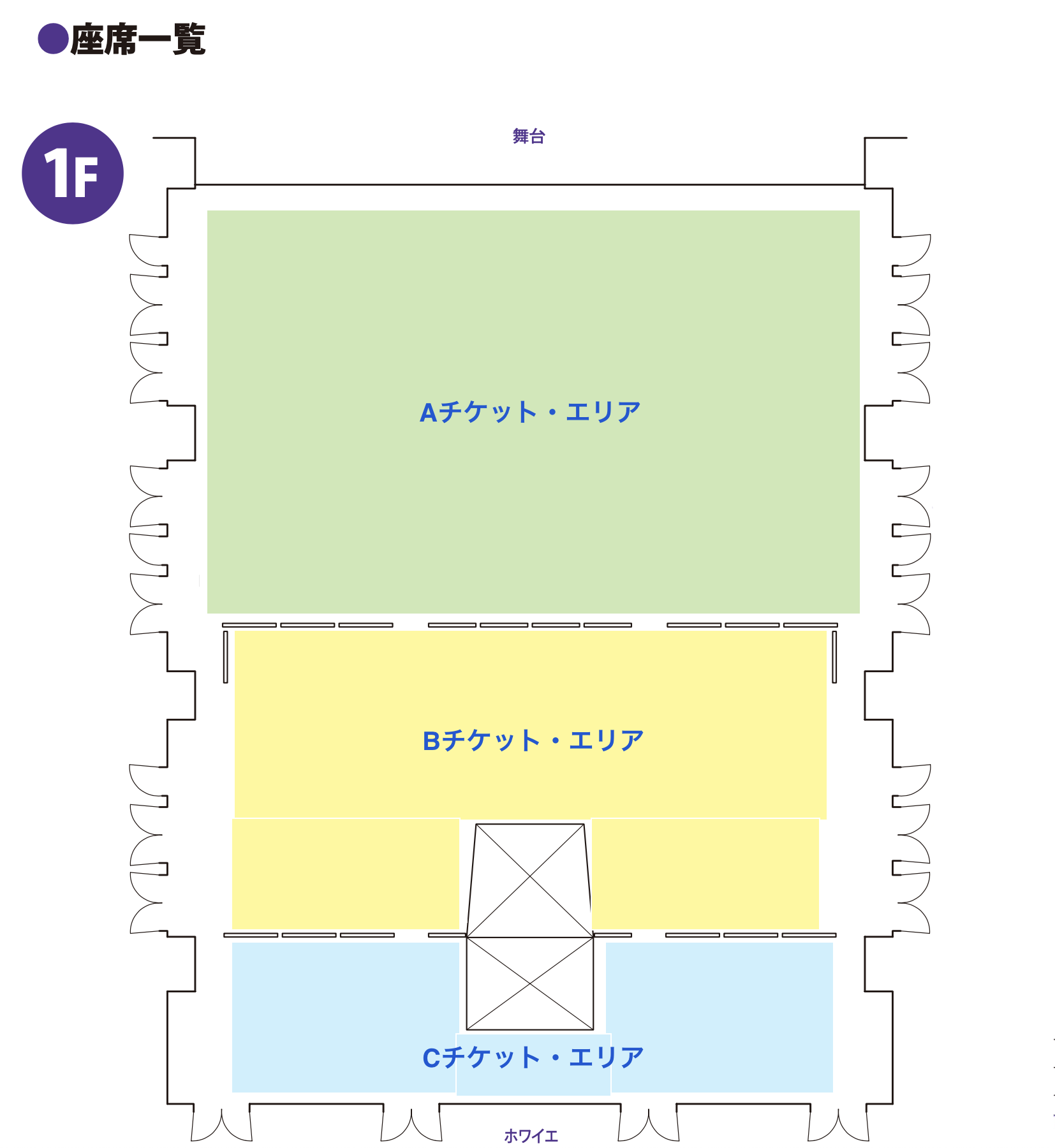 B・Cチケットは後日開始いたします。※下記画像記載の Aチケットエリア から整理番号順のご入場となります。